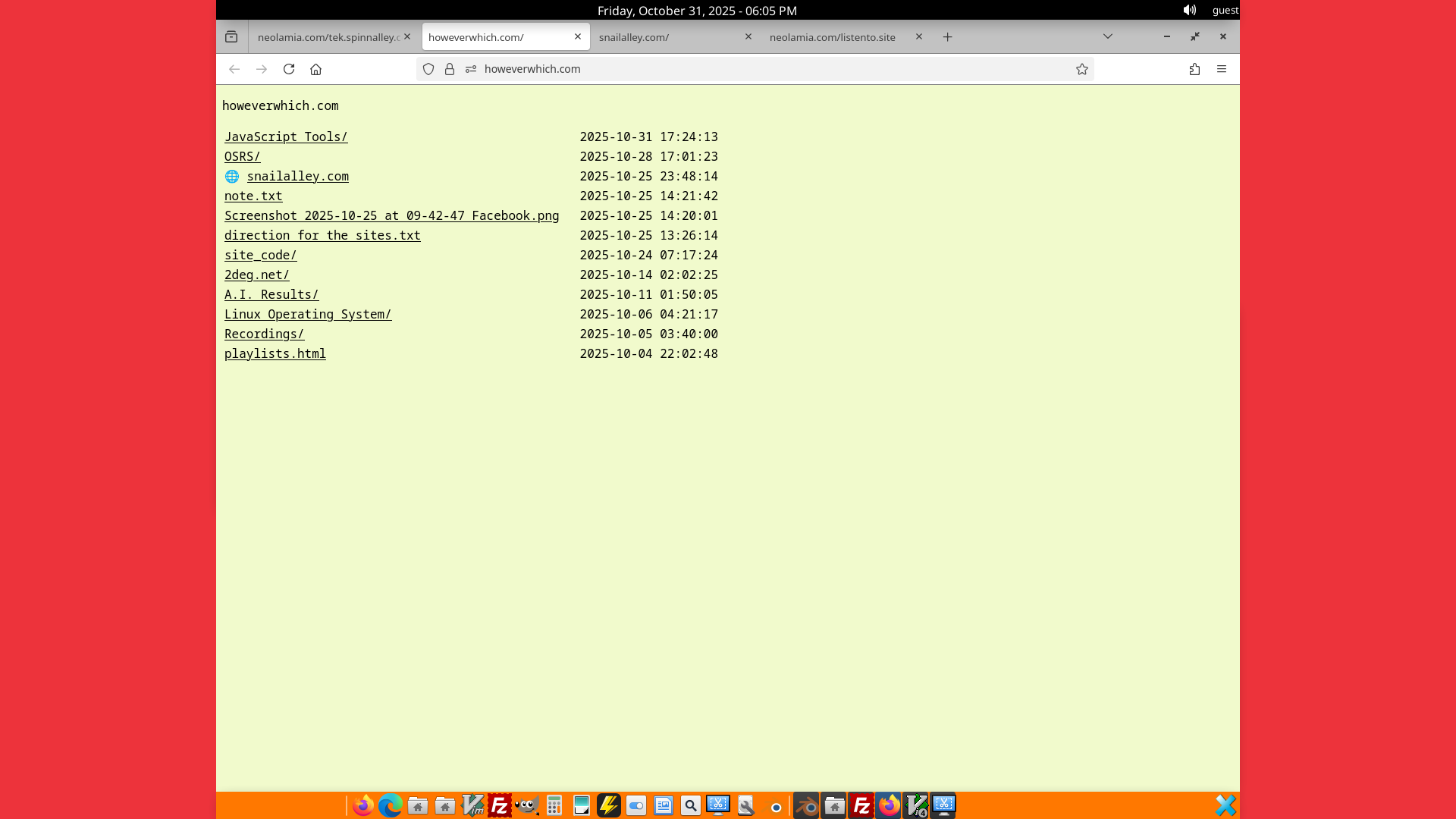 There is also listento.site This page is like my profile, and to get an update of all my sites go to: tek.spinnalley.com (this one), howeverwhich.com, snailalley.com, and listento.site.
